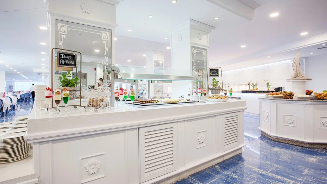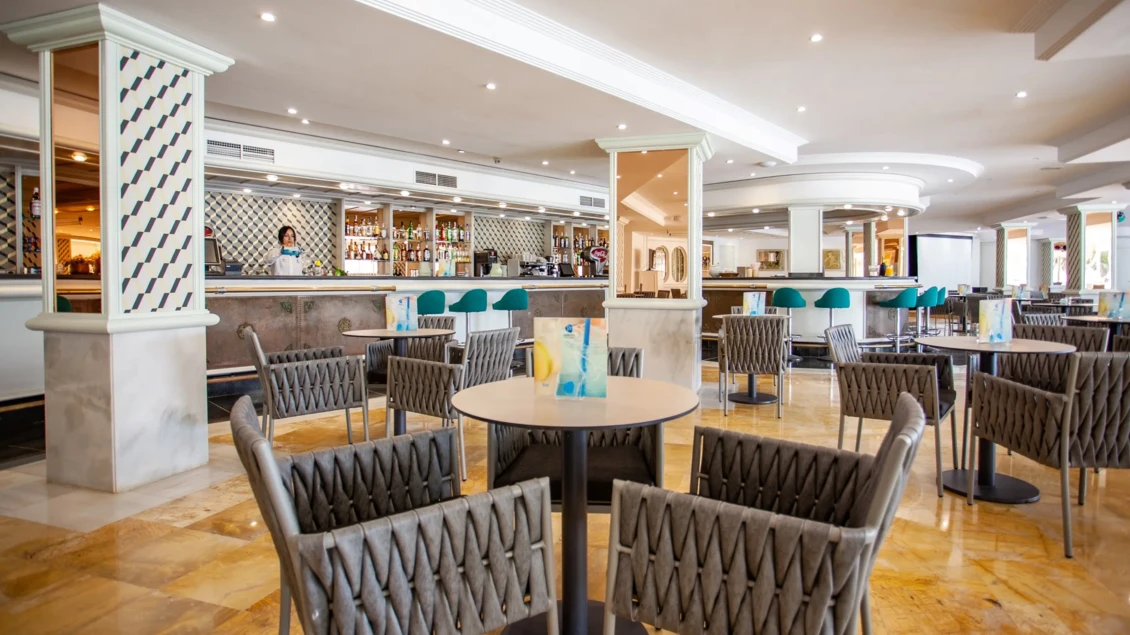 The main building houses the lobby with the reception, the buffet restaurant for breakfast and dinner, a spacious bar with an outdoor terrace, and a small fitness room. The apartments are located in two annex buildings. Centrally located in the hotel complex is the swimming pool. Above the beach, there is a beautiful lawn with a pool bar that belongs to the hotel. Additionally, the hotel offers a covered outdoor pool during the off-season. Sun loungers, umbrellas, and towels are available free of charge at the pool and in the garden. The use of the washing machine and dryer is available for a fee.