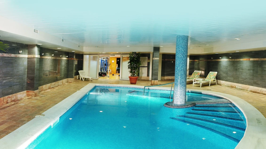 The hotel offers an outdoor and indoor pool, sauna, paddle tennis court, and a small fitness room.